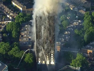 據(jù)后來(lái)倫敦市長(zhǎng)Sadiq Khan表示,因?yàn)榇髽莾?nèi)部的火勢(shì)太嚴(yán)重,消防官兵也只能達(dá)到12層。從晚上到白天,這場(chǎng)燒了幾乎12個(gè)小時(shí)才慢慢被撲滅。因?yàn)檎髽菐缀醣粺?,人們懷疑它有倒塌的危險(xiǎn),于是封鎖大樓周圍的街道,還將附近居民樓的住戶緊急轉(zhuǎn)移。